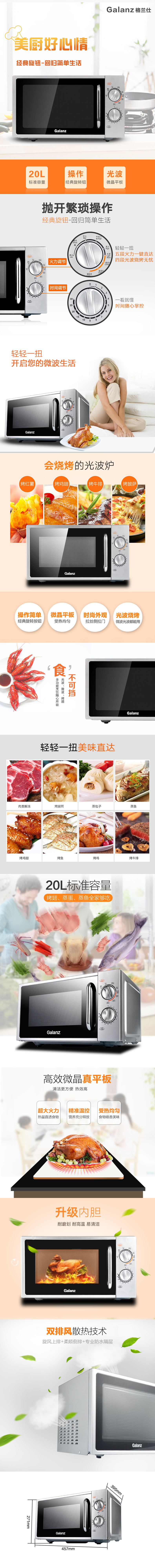 格兰仕(Galanz)|微波炉/烤箱,-格兰仕(Galanz) 20L机械式微波平板/光波烧烤/旋钮操作 G70F20N2L-DG(S0)