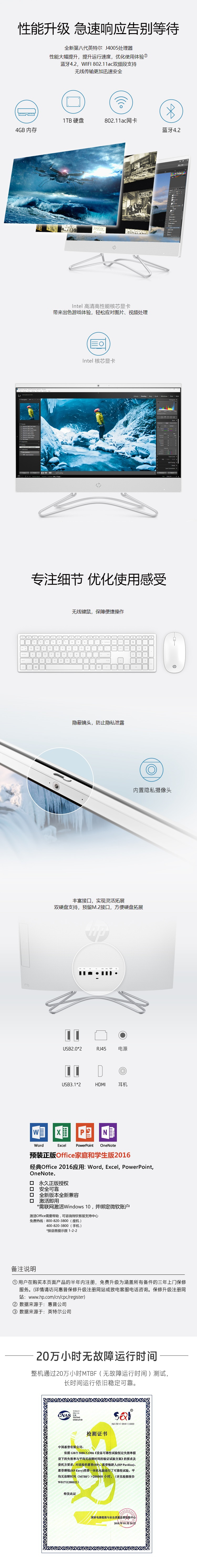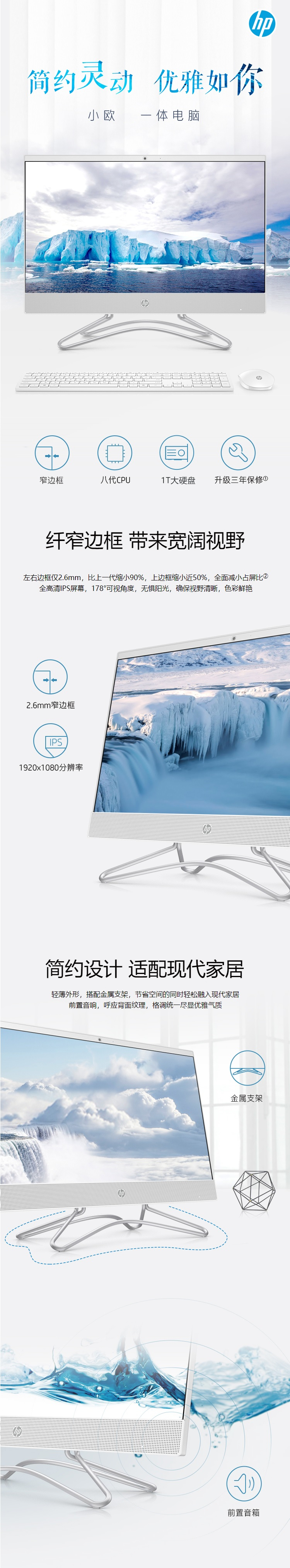 惠普(HP)|台式电脑,-惠普(HP) 23.8英寸 大屏1080P全高清一体机(23.8" FHD,Intel J4005,4G/1T,核显,Win10,无线键鼠)