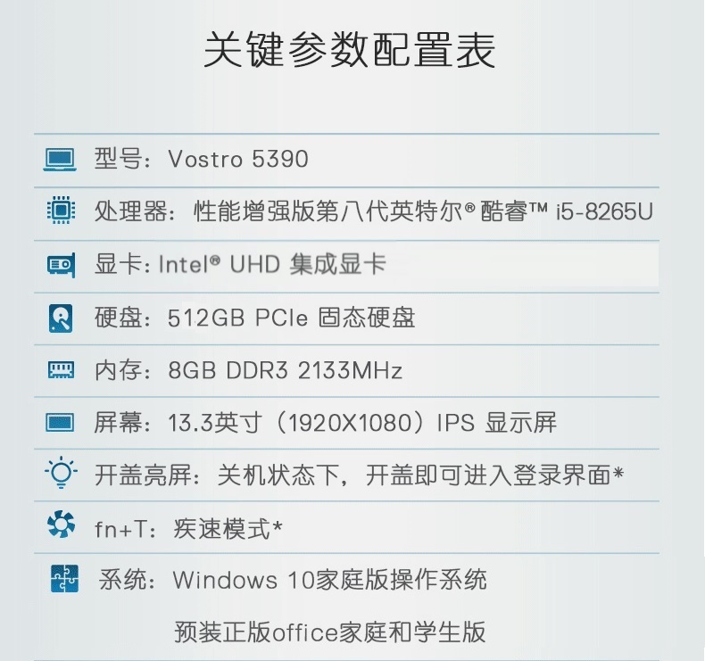 戴尔(DELL) 轻薄商务本 成就 13-5390-2605(13.3英寸屏,8GB内存,512GB固态硬盘,集显,i5-8265U) >