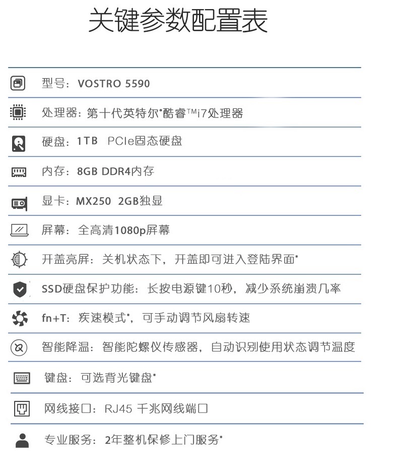 戴尔(DELL) 轻薄商务本 成就 15-5590-1825(15.6英寸屏,8GB内存,1TB固态硬盘,2GB独显,i7-10510U) >