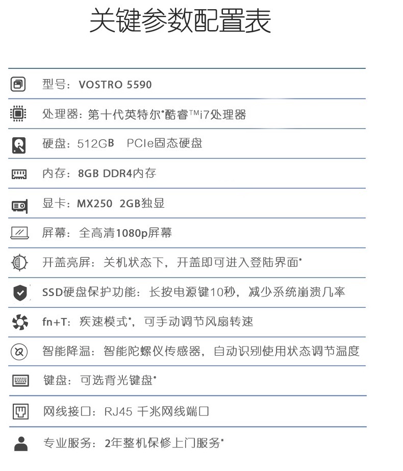 戴尔(DELL) 轻薄商务本 成就 15-5590-1725(15.6英寸屏,8GB内存,512GB固态硬盘,2GB独显,i7-10510U) >