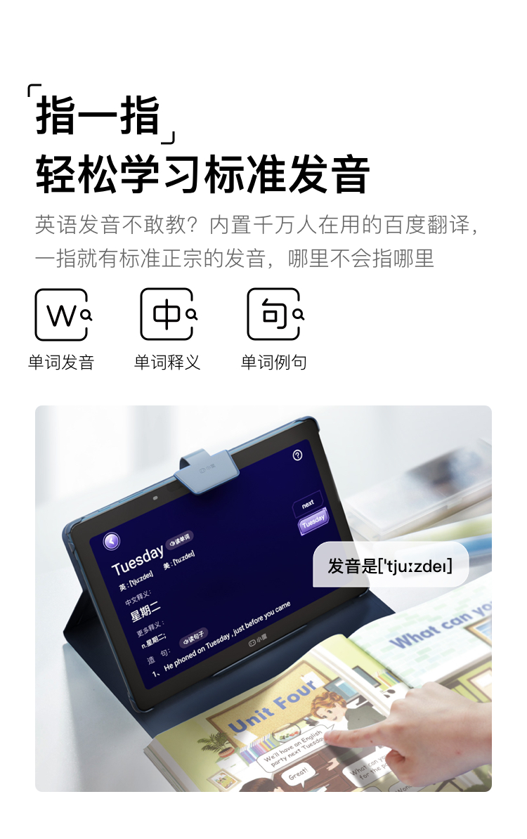 小度(Xiao Du)|平板电脑,-小度智能学习平板S12(4GB+128GB)家教机 点读机 早教机 小学初中高中同步学习机 XDH-25-B3