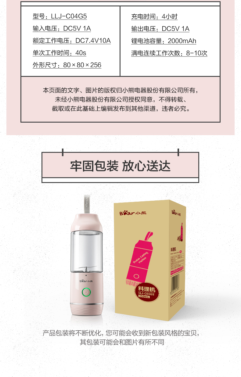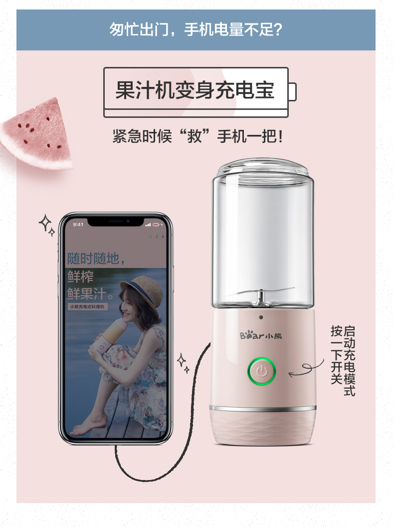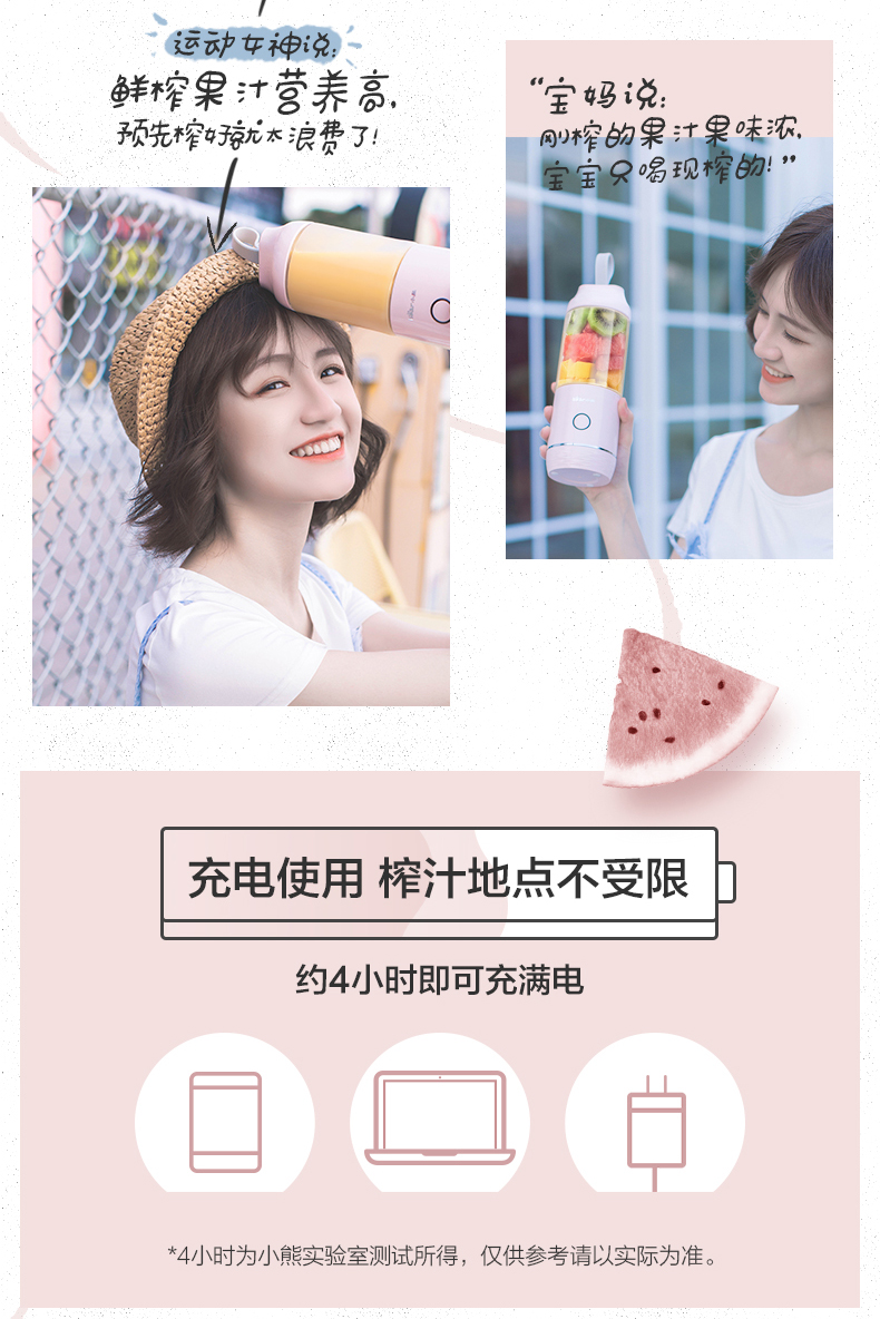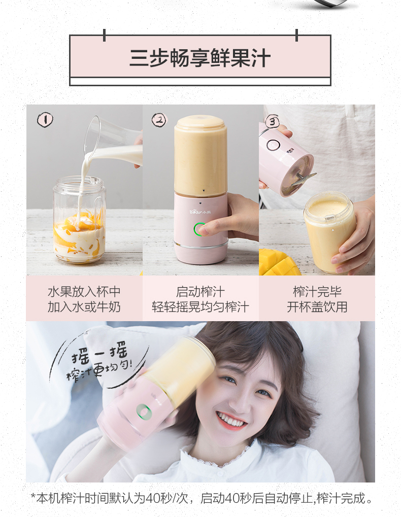 小熊(Bear)|榨汁/搅拌,-小熊(Bear) LLJ-C04G5榨汁机便携式家用迷你小型果汁机学生榨汁杯