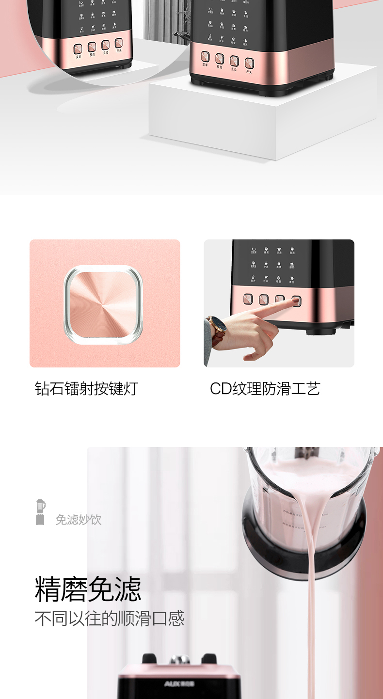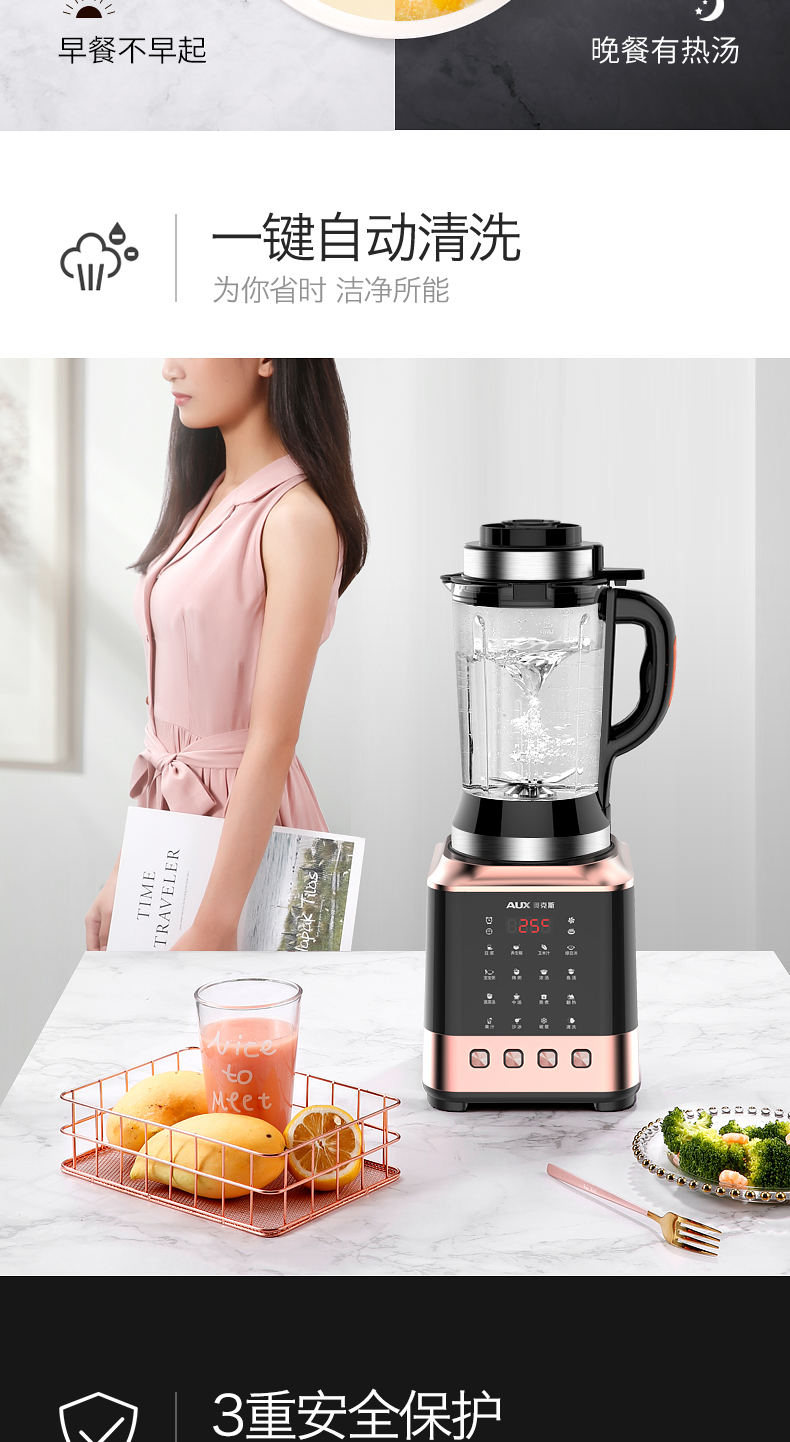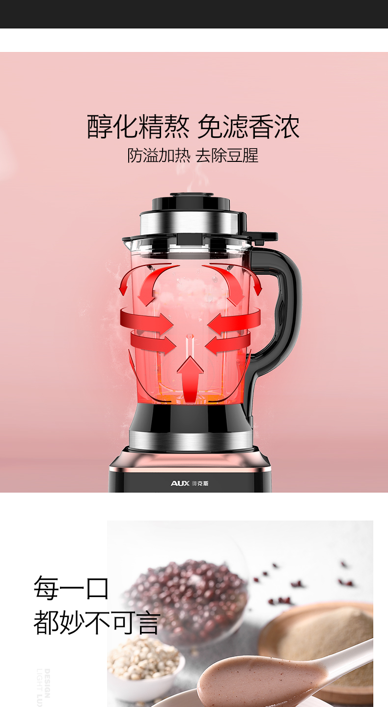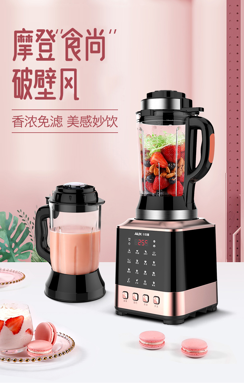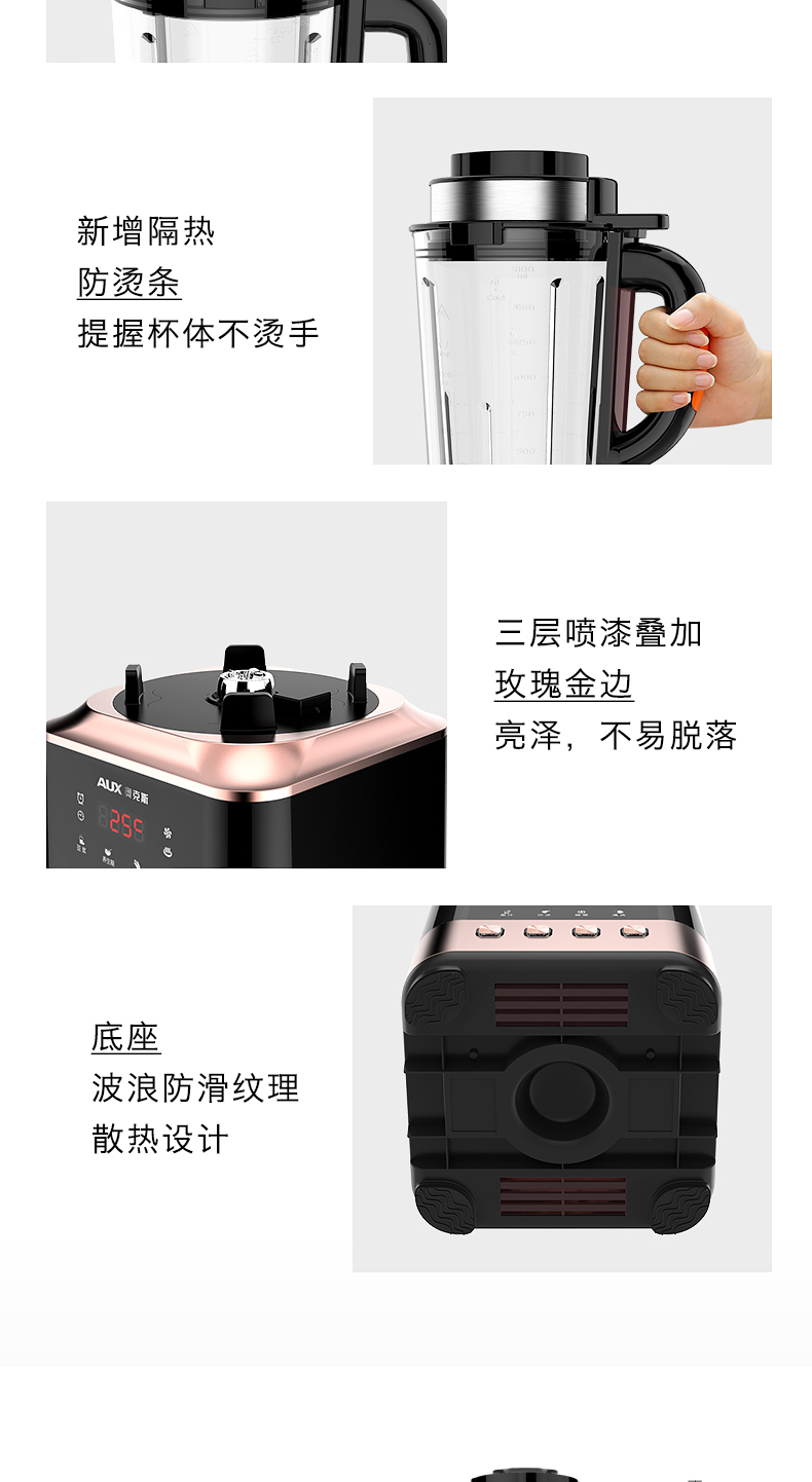 奥克斯(AUX)|榨汁/搅拌,-奥克斯(AUX) 1.8L 家用型多功能破壁营养调理机 HX-PB856(冷热双杯,破壁机,料理机)