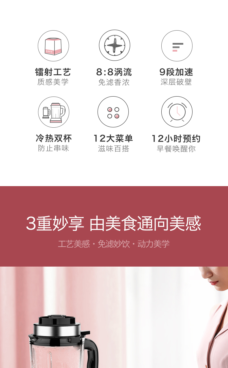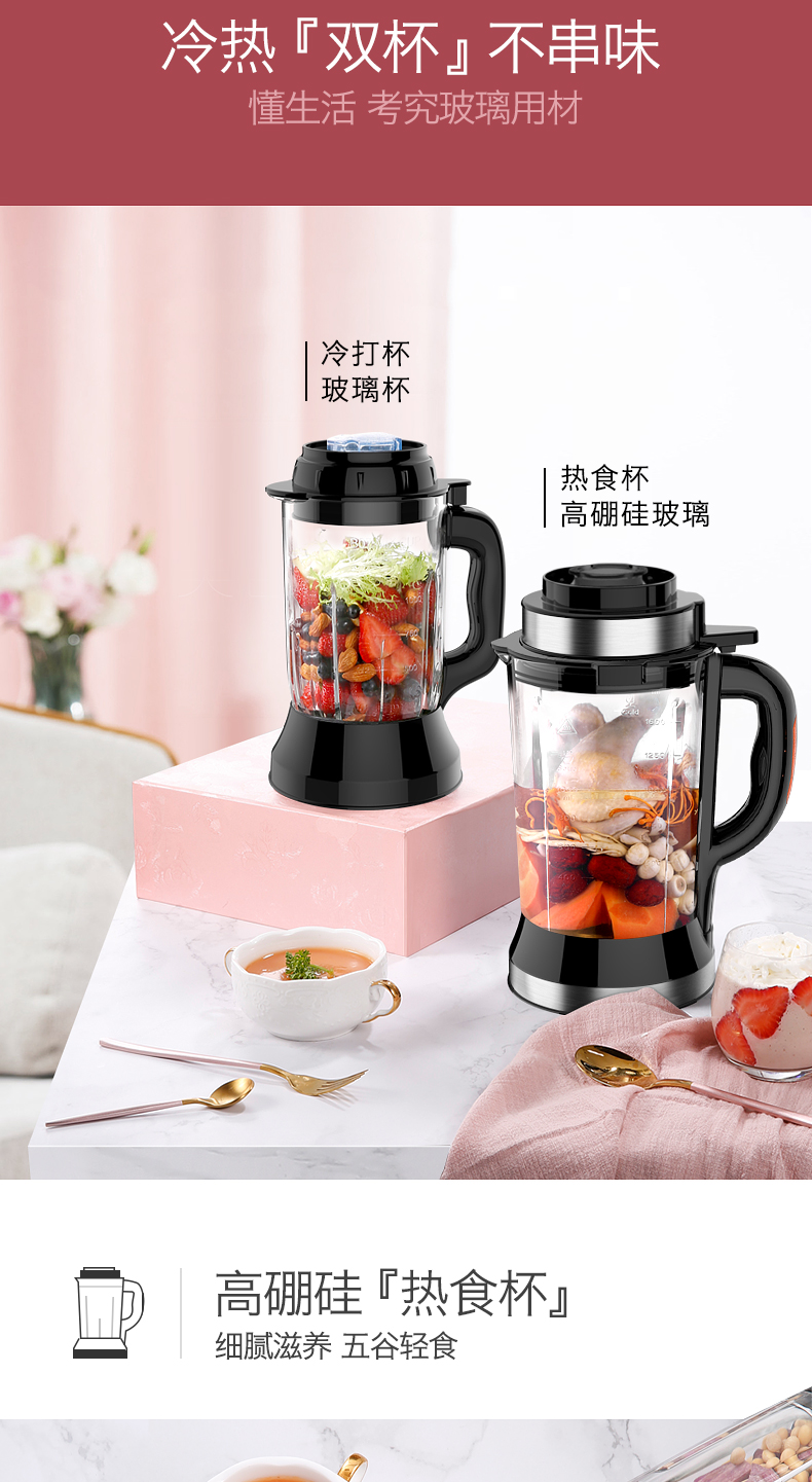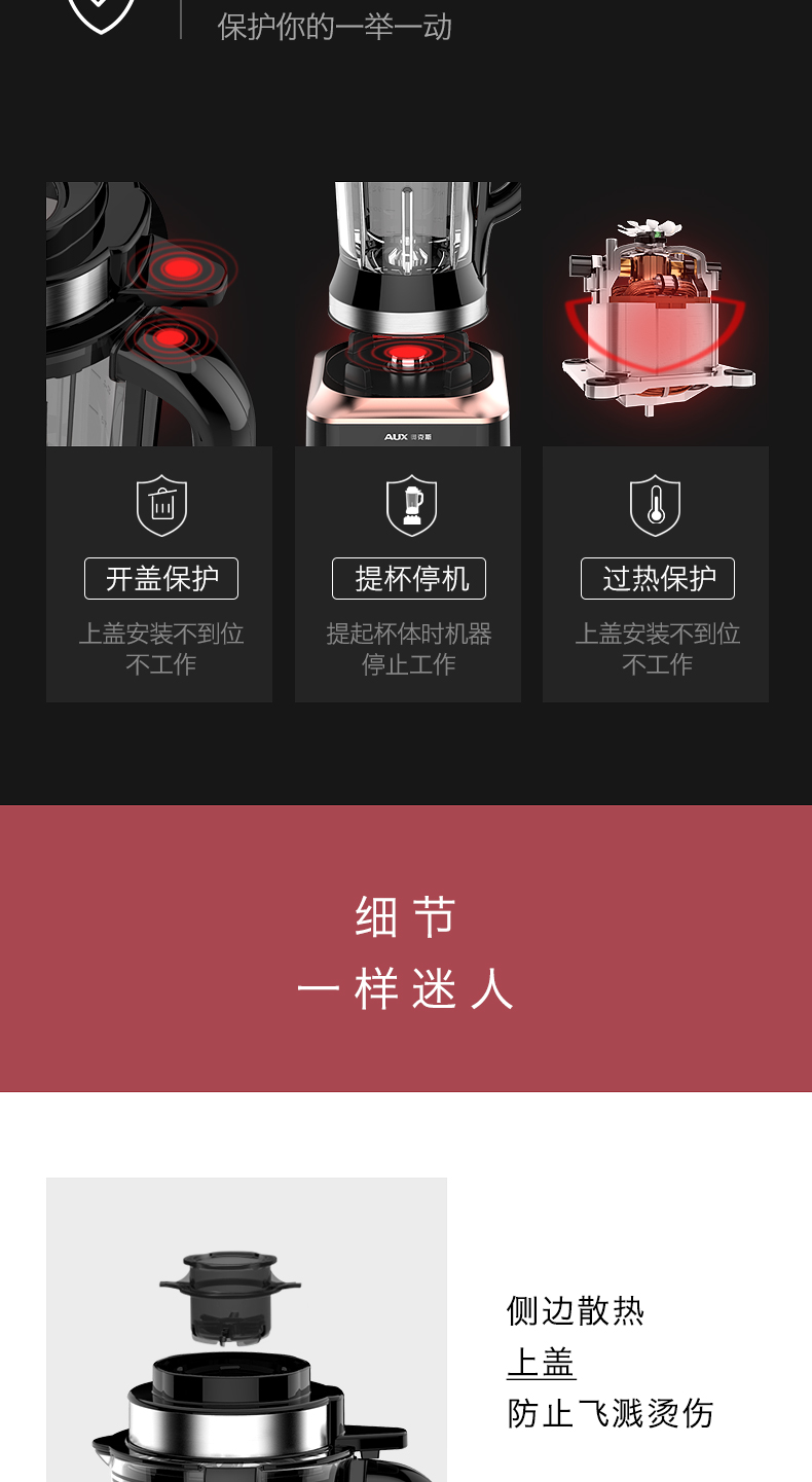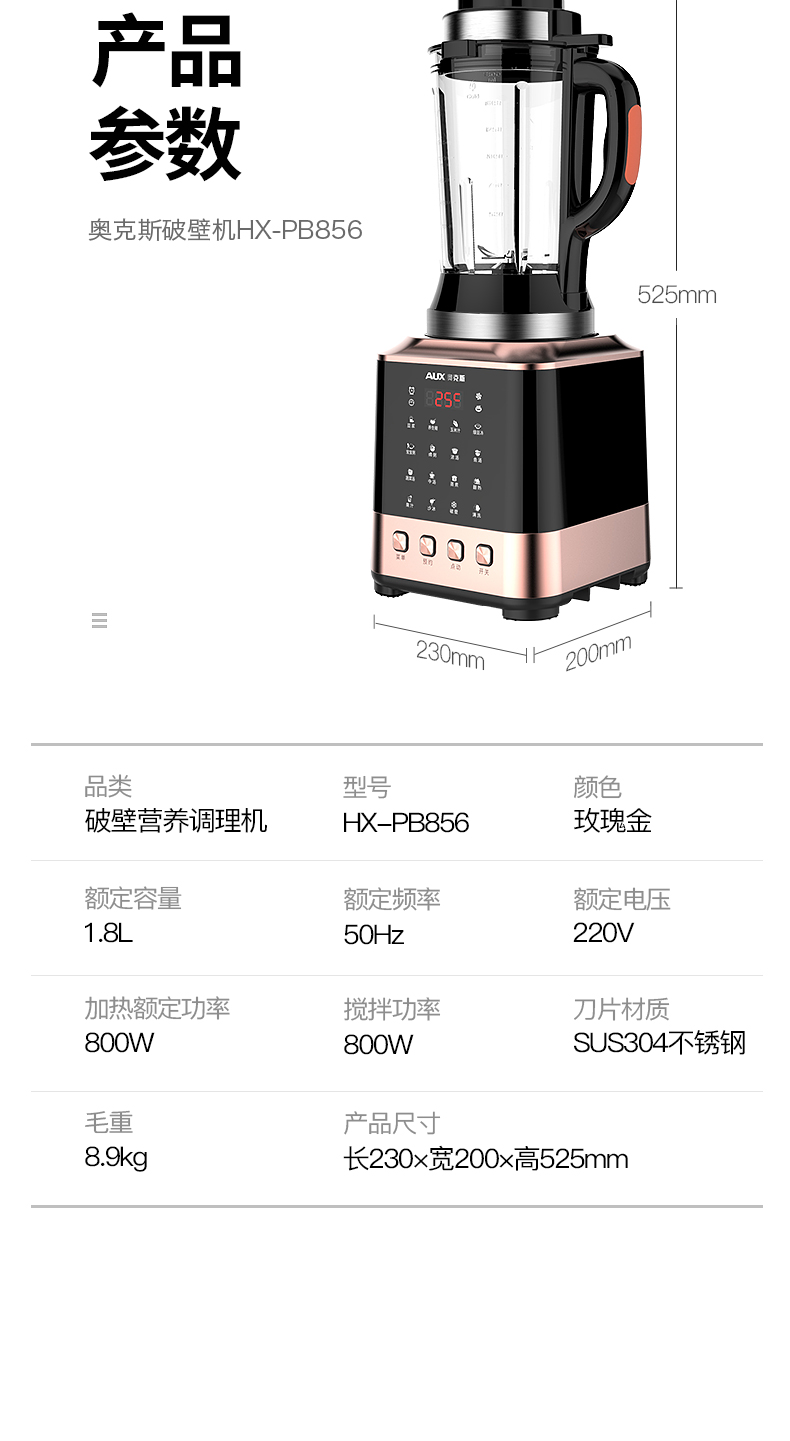 奥克斯(AUX)|榨汁/搅拌,-奥克斯(AUX) 1.8L 家用型多功能破壁营养调理机 HX-PB856(冷热双杯,破壁机,料理机)
