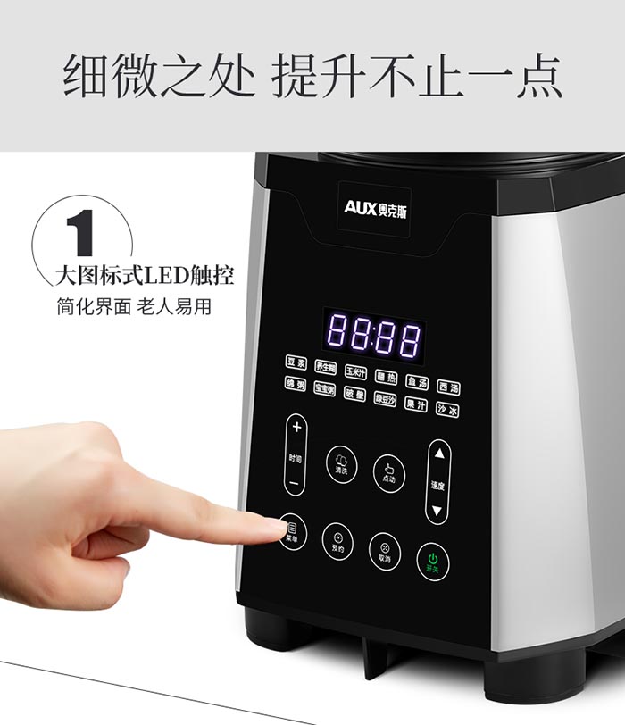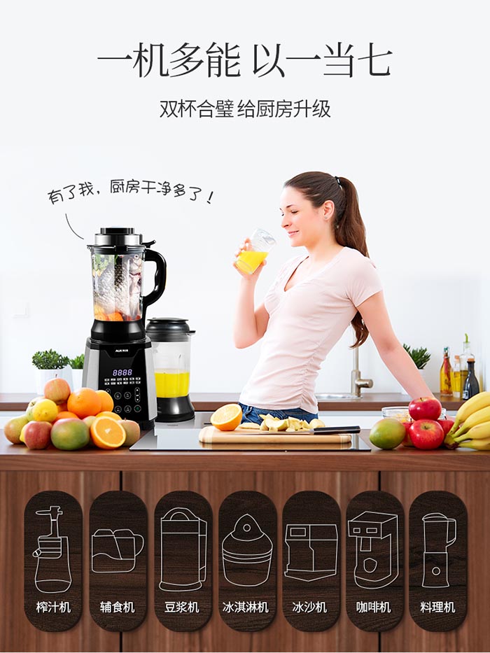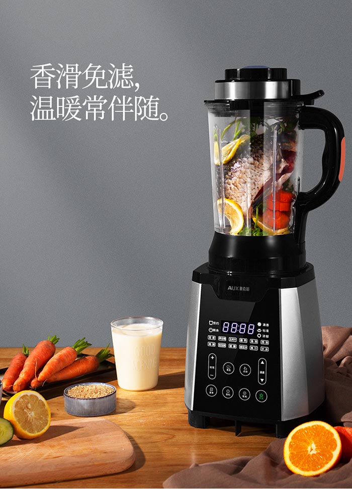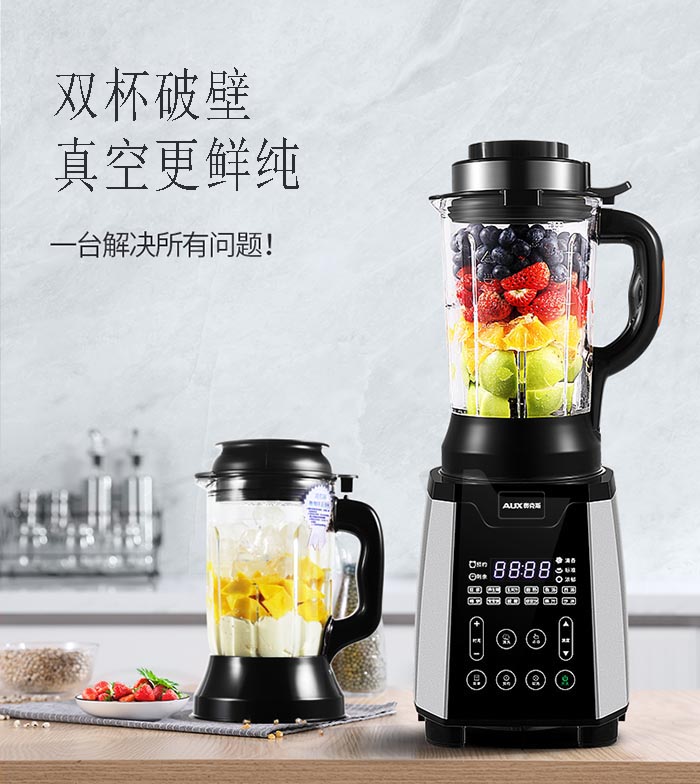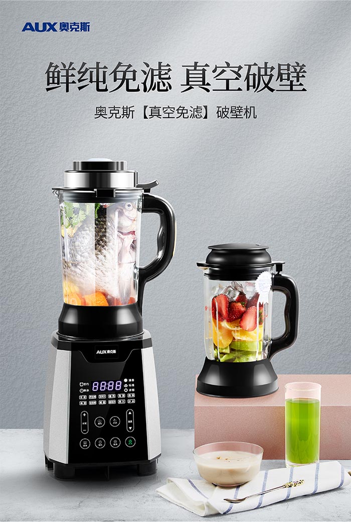奥克斯(AUX)|榨汁/搅拌,-奥克斯(AUX) 多功能真空免滤加热破壁机 HX-PB858(冷热双杯,八叶刀头,搅拌机,料理机)