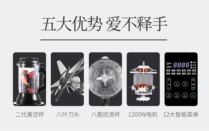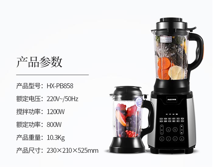 奥克斯(AUX) 多功能真空免滤加热破壁机 HX-PB858(冷热双杯,八叶刀头,搅拌机,料理机) >