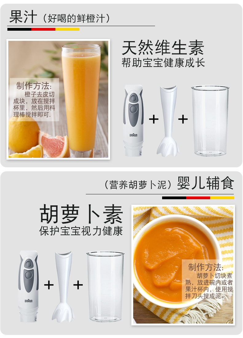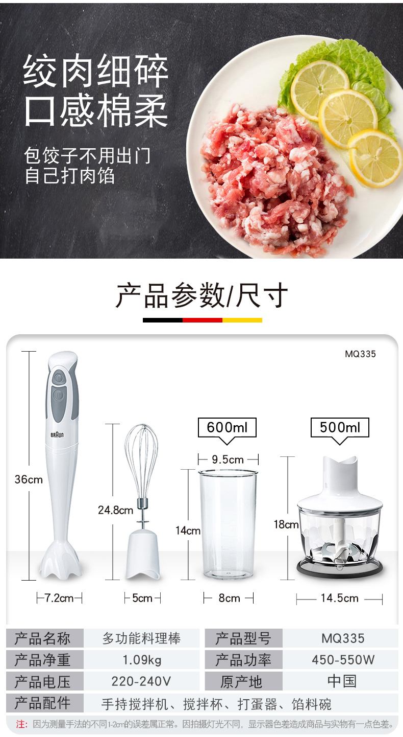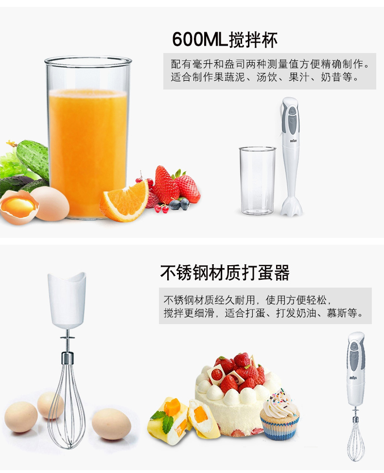 博朗(BRAUN)|榨汁/搅拌,-博朗(BRAUN) MQ335多功能手持式料理棒搅拌器 搅拌棒 宝宝婴儿辅食料理机