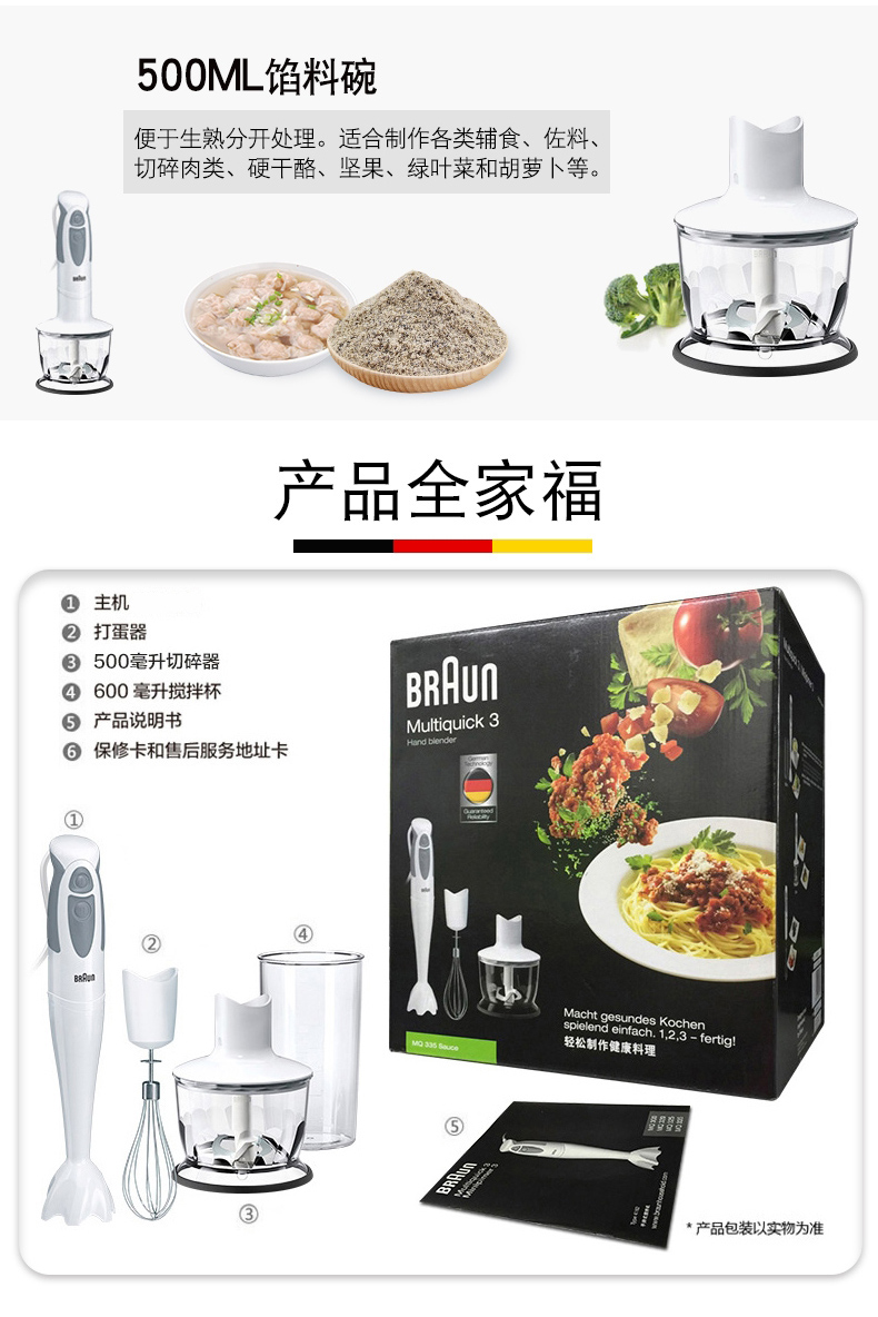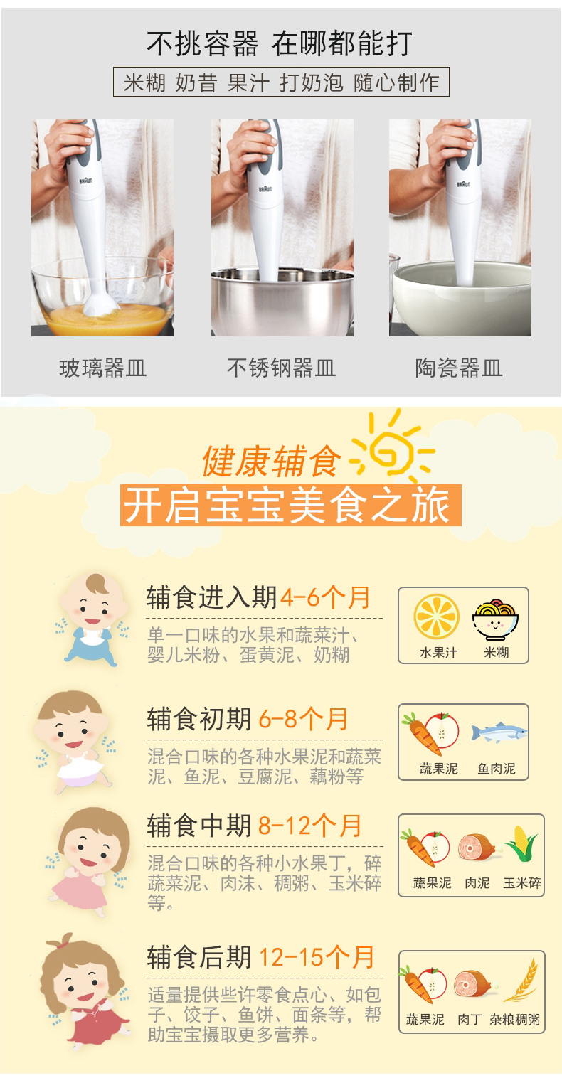 博朗(BRAUN) MQ335多功能手持式料理棒搅拌器 搅拌棒 宝宝婴儿辅食料理机 >