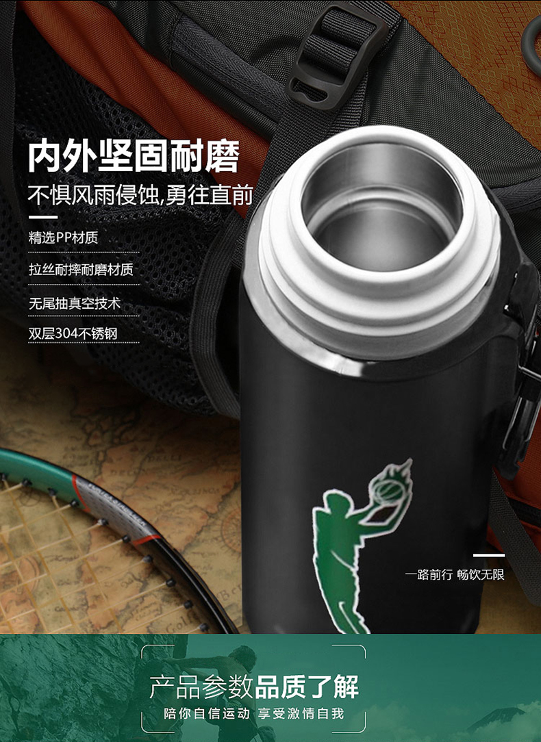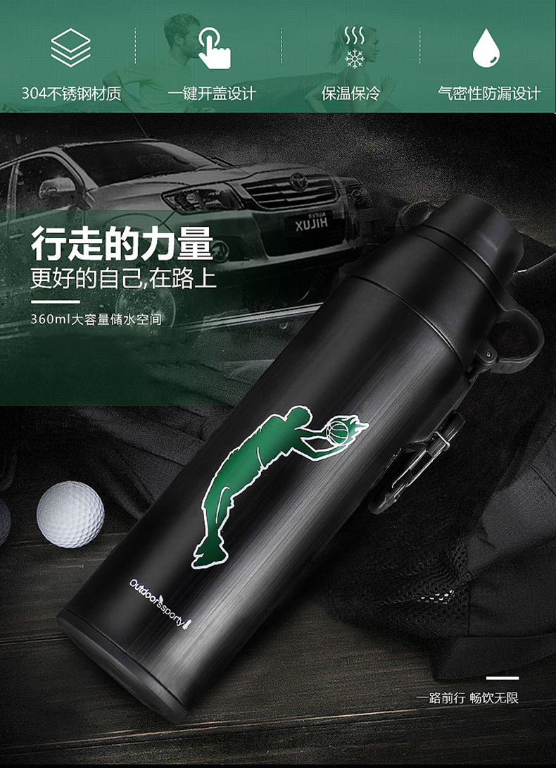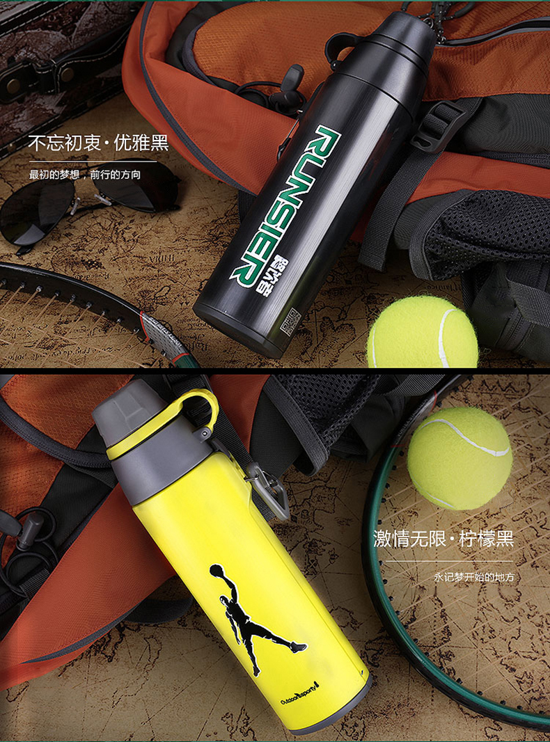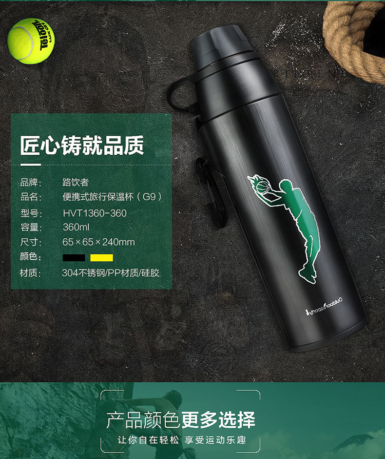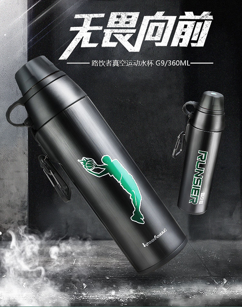 路饮者|保温杯,-路饮者 (RUNSIER)G9 360ML便携旅行郊游保温杯 不锈钢水杯 运动挂扣带防磨袋 黑色