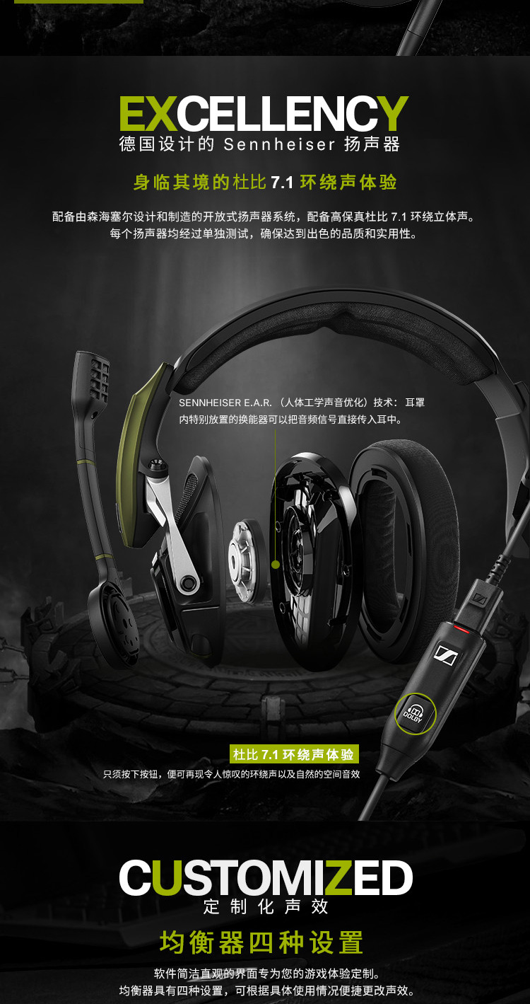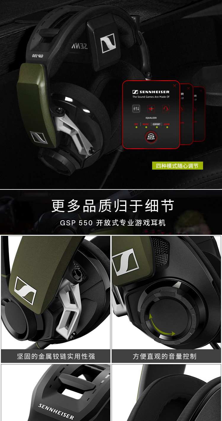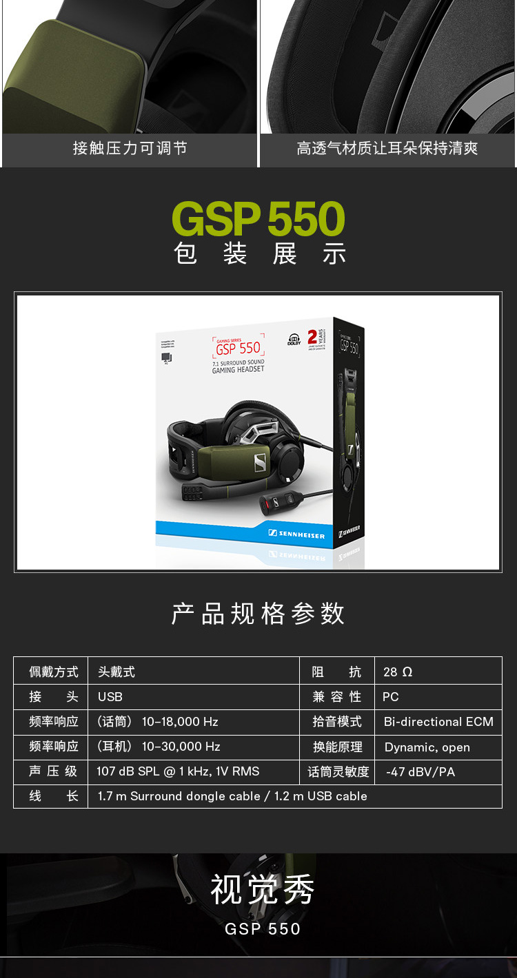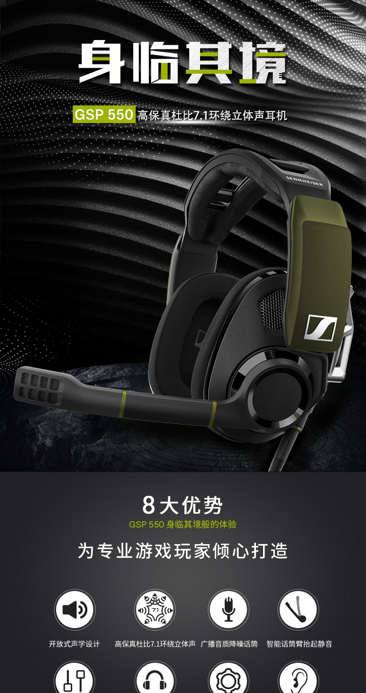 森海塞尔(SENNHEISER)|耳机,-SENNHEISER/森海塞尔 GSP550 开放式吃鸡耳机头戴式游戏 网课耳机