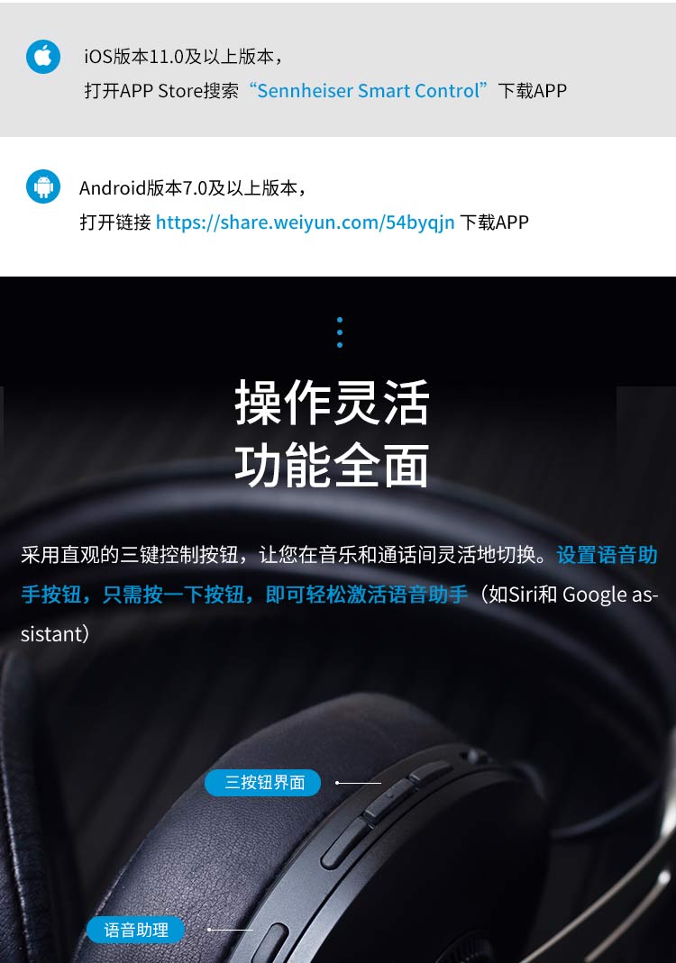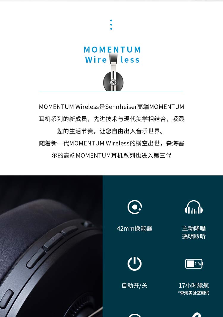 森海塞尔(SENNHEISER)|耳机,-SENNHEISER/森海塞尔 MOMENTUM 3 Wireless蓝牙耳机无线大馒头3代