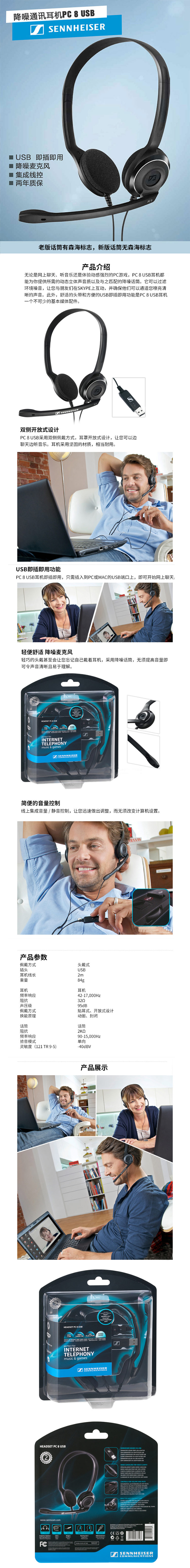 森海塞尔(SENNHEISER)|耳机,-SENNHEISER/森海塞尔 PC 8 USB 网课帮手 游戏耳机头戴式电脑耳麦